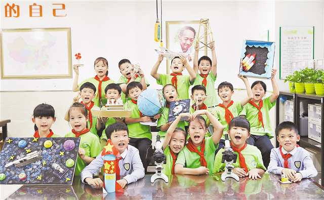 9月24日,沙坪壩區學府悅園一小的科學課上,同學們展示手工作品。 今年9月是首個全國科普月?!?/p>