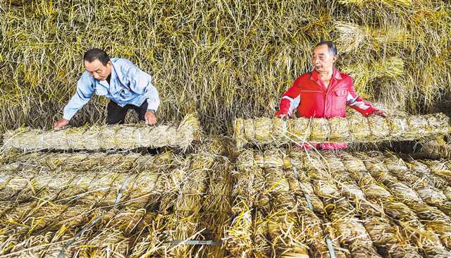 9月12日,墊江縣周嘉鎮雨山村秸稈統一回收點,工人在整理秸稈半成品。 近年來,墊江縣通過政府引導和市場配置相結合,以種植大戶、種植企業以及現代農業示范園區為重點,大力推廣“秸—飼—肥、秸—能—肥、秸—菌—肥、秸—炭—肥”等循環利用模式,促進秸稈高質高效利用,進一步提升耕地質量、改善農業農村環境,也一定程度上促進農民增收?!?/p>