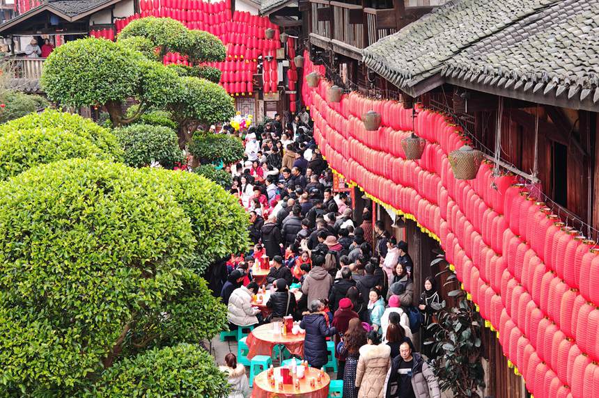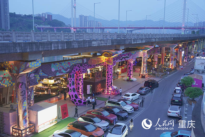 夜幕降臨,人流如織的重慶市江北區觀音橋步行街在LED廣告屏映照下,熱鬧又有煙火氣。