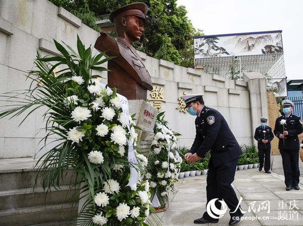 人民網重慶4月3日電 4月3日,重慶渝北區公安分局在楊雪峰烈士園,開展了“緬懷公安英烈·傳承‘時代楷!瘛鼻迕髦黝}活動,深切緬懷杰出戰友、“最美奮斗者”“時代楷!薄叭珖蚕到y一級英雄模范”楊雪峰烈士。