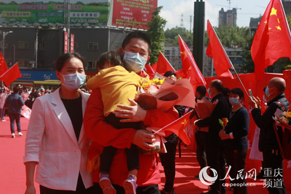 人民網重慶4月12日電(胡虹)12日上午,綦江區第三批25名醫療隊員結束14天的集中休養,返回綦江與家人團聚。至此,當地61名支援湖北醫療隊員“零感染”全部平安回家。