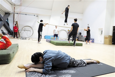 “終于可以回來練功了!”對25歲的陶夕林來說,雜技團的排練廳就像自己家一樣熟悉。她從7歲開始練雜技,擅長柔韌性項目,已是團里資格最老的“老演員”之一,“這還是我頭一回離開排練廳這么長時間!