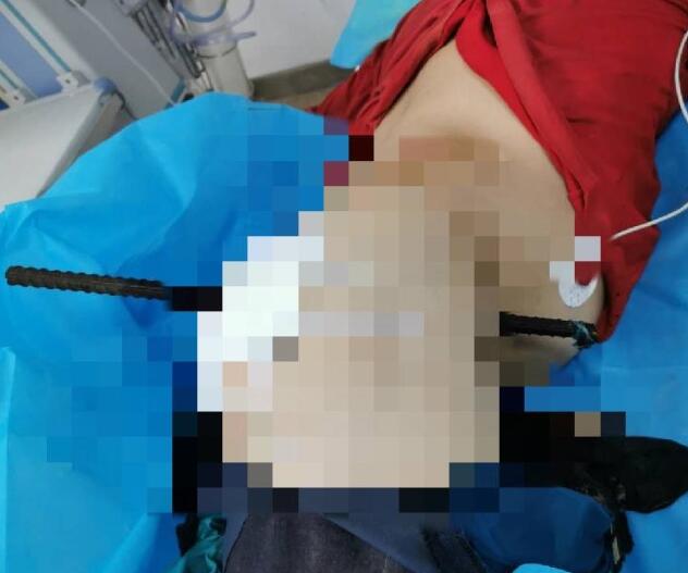 據了解,被鋼筋刺穿身體的男子44歲,當天在工地作業時,不小心從1米多高的地方摔落,被地上豎立的鋼筋從右臀部向前側貫穿。