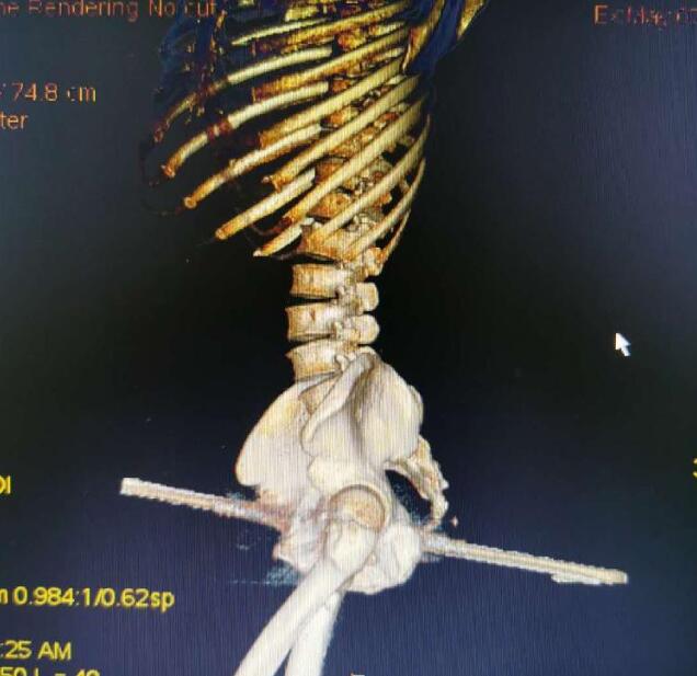 “雖然鋼筋刺穿了身體,但幸運的是避開了血管、坐骨神經、股動脈等重要位置!敝貞c市東南醫院骨科副主任譚云說,經過前期治療患者的生命體征比較穩定,院方經過會診提出兩種方案,一是將右臀部表面組織全部切開,露出鋼筋。另一中方案就是將鋼筋從身體內抽出。