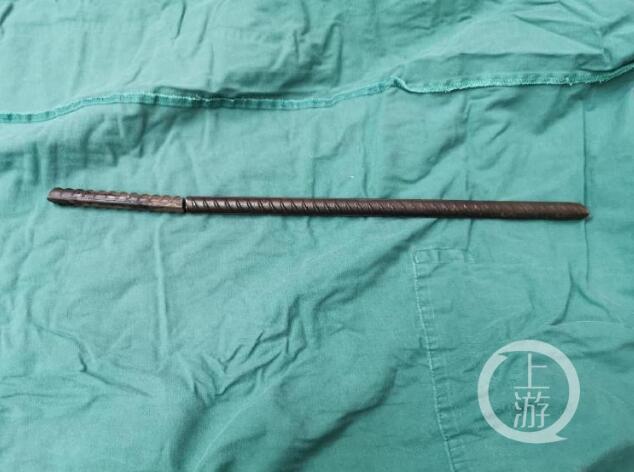 到達醫院后,消防員們被醫院工作人員帶到手術室外,按要求換好衣服后進入手術室,“當時看見一名男子側躺在手術臺上,一根鋼筋從臀部穿過男子身體! 天文特勤站隊長助理耿家家說,據他目測,臀部那一側鋼筋裸露在外有20厘米長,另一側裸露在外10厘米左右,鋼筋直徑在1.5厘米左右。后經測量,鋼筋長度在45厘米左右。