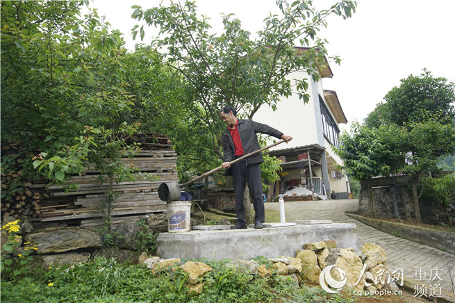 渝北區玉峰山鎮村民余木平正在收拾衛生。黃亞輝 攝