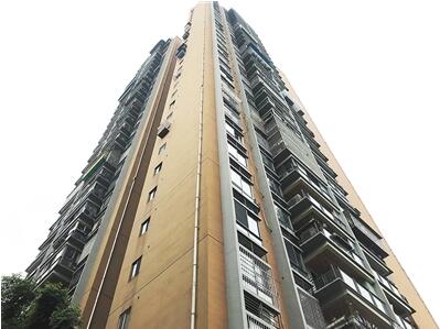 昨日上午,記者來到了位于沙坪壩區烈士墓的九鼎名都小區,根據居民的指引找到了8棟。記者看到,8棟一共有32層樓,每層有約10戶。在唯一一條進入8棟樓的通道旁,是一個健身區。