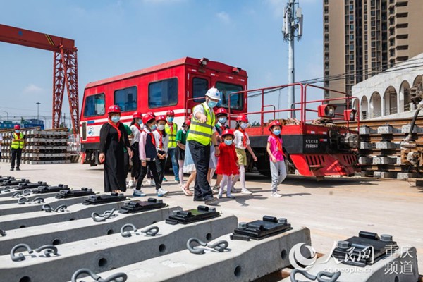 圖說:小學生走進軌道工地零距離感受重慶軌道交通建設。鄒樂攝