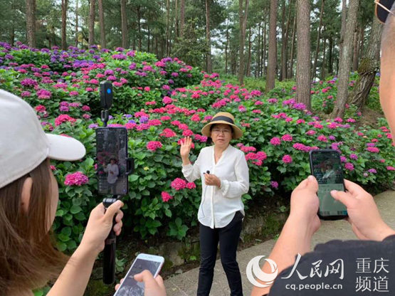 通過直播推廣涪陵繡球花。涪陵區文旅委供圖