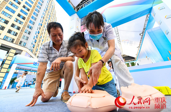 市民學習體驗心肺復蘇項目。重慶市應急管理局供圖