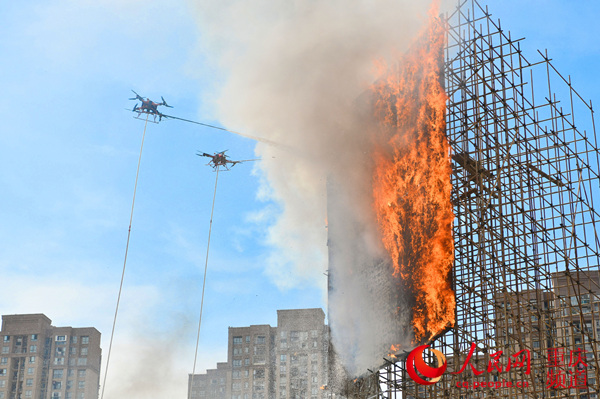 此次演練中,多機種多功能無人機系統承擔了火情偵查、破窗投送防毒面具和防火服、破窗投送消防水帶、撲滅明火等多重任務,為科學制定救援方案、安全解救被困人員、迅速有效滅火提供了有力的硬件支撐。整個演練中,應急救援隊伍展現了中低層建筑消防登高平臺地面救援,中高層無人機協同救援,超高層樓頂建立空中生命救援通道,以及地面消防和無人機協同實施高樓外立面滅火等多個演練場景。