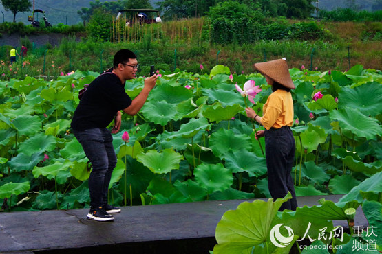 人民網重慶6月23日電 “荷葉羅裙一色裁,芙蓉向臉兩邊開! 六月正是賞荷采蓮的好時節。端午節前夕,漫步在永川十里荷香現代農業園區里,綿延數里的荷塘中開滿一朵朵粉嫩鮮艷的荷花,來自四面八方的游客們賞花、拍照、品嘗荷花宴,沉醉在田園生活的樂趣中,用回歸原始自然的方式開啟了端午假期生活。