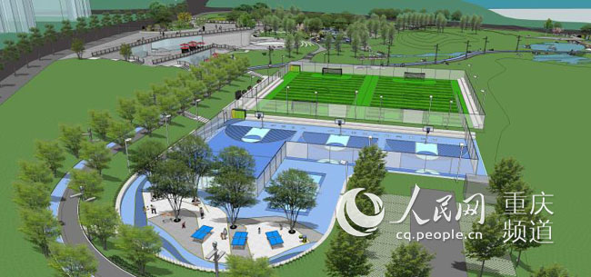 在建中的彈子石社區體育文化公園設計方案部分區域效果圖。 重慶市規劃和自然資源局供圖