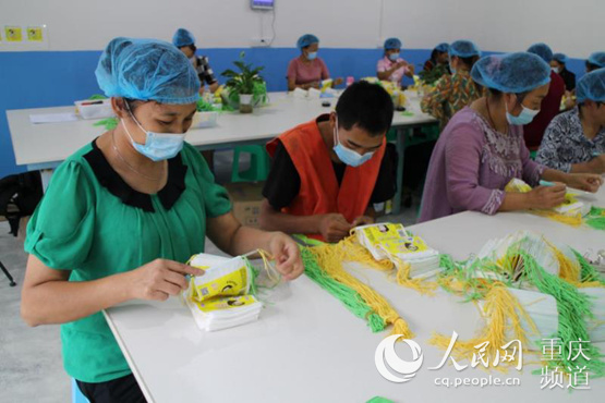 人民網重慶7月24日電 每天早上8點,家住銅梁區蒲呂街道新年村9社村民龍訓琴,準時喂完家里養的豬和雞鴨,牽起兒子黎志壺的手,一起沿著山路走到幾百米之外的新市社區,到這里的扶貧車間上班。干完上午的活兒,她中午還能早早回家給患病的丈夫和年邁的公婆做好午飯。