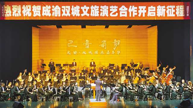 “峨眉山月半輪秋,影入平羌江水流……”7月24日晚,伴隨著國家二級演員、重慶歌舞團民族男高音王澗泉的激情朗誦,由重慶民族樂團與成都民族樂團共同合作演出的《巴音蜀韻——成渝雙城國樂嘉年華》民族管弦樂音樂會在重慶國泰藝術中心隆重上演。