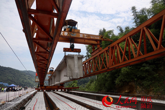 最后一片T梁被進行吊裝架設。重慶高速集團供圖
