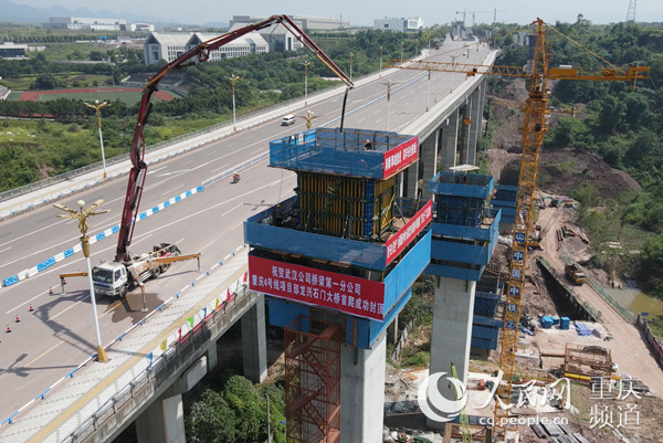 重慶軌道交通4號線龍興石門大橋首根空心墩封頂完成。中鐵七局重慶軌道交通4號線項目部供圖