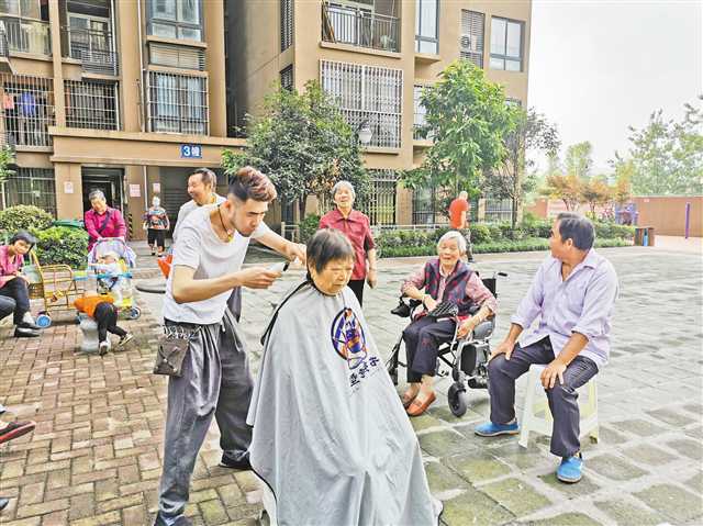 在“芳姐”的帶動下,越來越多的社區居民成為志愿服務者。每月的第一個周一,都是百佳園社區義務剪發日。這一天,彭彬洋會早早來到社區活動室或空壩處,為轄區70歲以上的老人免費理發。彭彬洋家住2棟,在大門口開了家理發店,過去喜歡到處挑刺,總覺得社區這不好、那不好!熬用褡灾螘䦷臀覀兘鉀Q了實實在在的難題,現在也輪到我為社區出一份力!迸肀蜓笳f。
