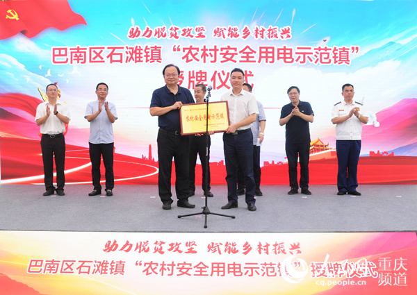 人民網重慶8月7日電 8月7日,重慶市巴南區石灘鎮舉行全市首個“農村安全用電示范鎮”授牌儀式,標志著石灘鎮成為重慶市首個農村安全用電示范鎮,進一步提升農村安全用電水平,助力鄉村振興。