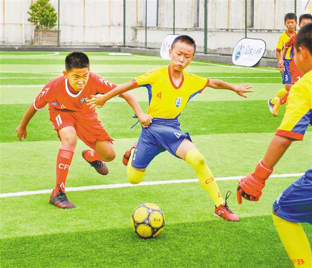 8月8日,高新區虎溪街道石牛崗社區,青少年正在足球比賽中奮力拼搶。記者 張錦輝 實習生 唐苓鈴 攝/視覺重慶