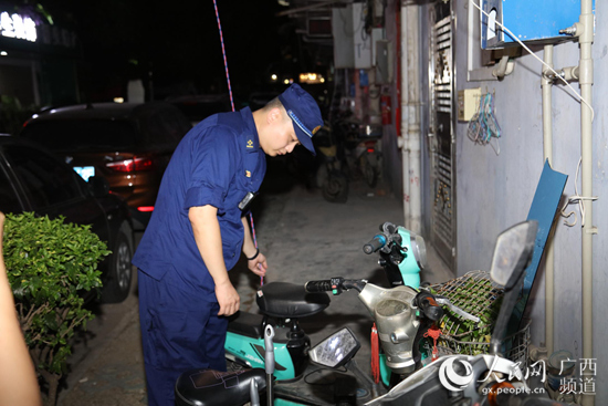 消防人員檢查電動車亂停亂放情況。南寧消防供圖