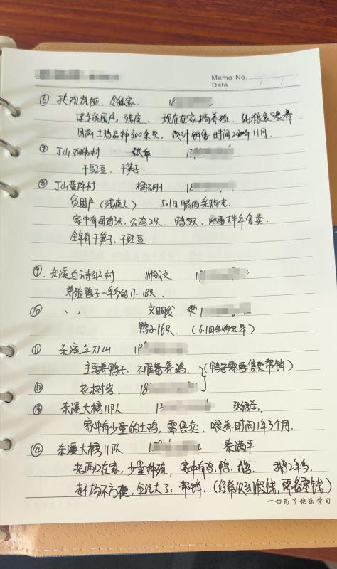 趙娜的筆記本上密密麻麻記錄著村民種養農副產品的信息。受訪者供圖
