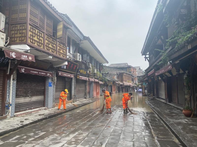 上午8時,磁器口的洪水出現消退。沙坪壩無人員傷亡和重大財產損失,經受住洪峰考驗,環衛工人開始打掃清淤。