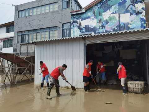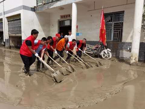 洪水漸退,受災區域聚集大量淤泥,全區各個部門單位迅速組建黨員志愿隊,幫助受災地區開展災后重建,黨員干部沖鋒在前、聚心凝力,人民群眾備受鼓舞、同向而行,主動參與災后重建志愿服務。