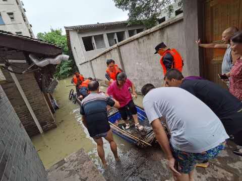 桂林街道黨員干部緊急轉移受困群眾。潼南區委組織部供圖