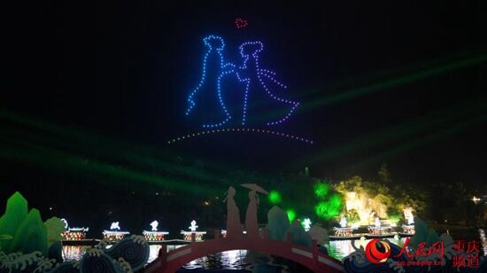 開幕儀式上,熱情洋溢的民謠歌手、空谷幽蘭的樂器表演、婀娜多姿的舞蹈身姿、靈動飄逸的空中表演相繼登臺。瀨溪河上,明亮璀璨的燈光點亮了銀河鵲橋,再現了牛郎織女相會的千古佳話,河燈漂流與無人機表演也悉數亮相。炫彩的燈光伴隨流光溢彩的無人機表演將本次活動推向高潮。