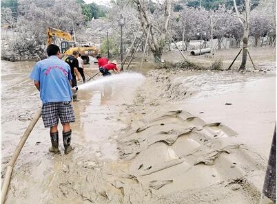 雜物被一一清理干凈后,一支支高壓水槍被運到了古鎮,“水槍壓力太大,一個人搞不定,我們得二至三個人負責一支,才能控制住它!