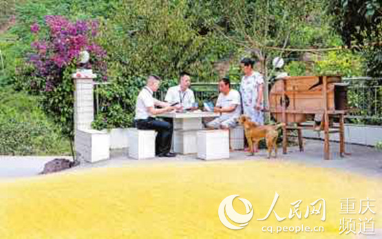 金融扶貧——農業銀行工作人員到統景鎮合理村上門為村民辦理業務。向雨攝