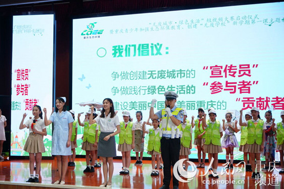 人民網重慶9月1日電 今日,重慶市學生開學第一天,“無廢城市·綠色生活”短視頻大賽啟動儀式暨重慶市青少年加強生態環保教育、創建“無廢學!毙聦W期第一課主題教育活動,在兩江新區金山小學校舉行。