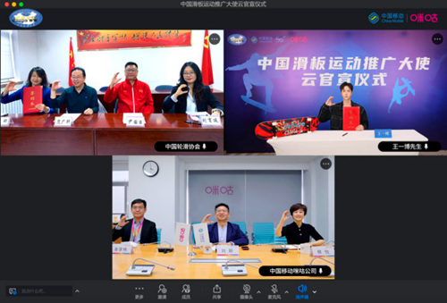 近日,中國輪滑協會舉行線上“中國滑板運動推廣大使云簽約”,國家體育總局社會體育指導中心主任范廣升、國家體育總局社會體育指導中心副主任尹國臣、國家體育總局社會體育指導中心輪滑部主任張娜、演員王一博、中國移動咪咕公司總經理劉昕等參與了儀式。