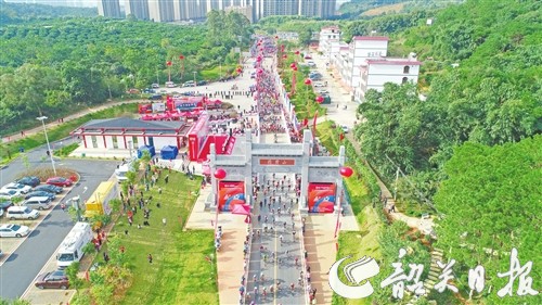 參賽選手從丹霞山南門出發。韶關日報記者張偉攝