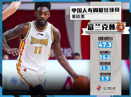 富蘭克林在第四周的三場比賽中,場均出場46分鐘,交出了47.3分、15.3次助攻、11.3個籃板以及1.7次搶斷的驚艷成績單,其中兩場比賽打出“三雙”表現。正是在他的強勢帶領下,山西隊取得了2勝1負的成績。(楊喬棟)