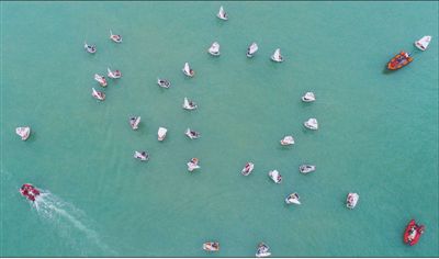 11月21日,參賽選手在2020年?谑惺讓弥行W生帆船帆板大賽比賽中。11月22日,為期兩天的?谑兄行W生帆船帆板大賽落幕。本次大賽共設置4個賽事組別,來自?谑12所中小學校的小選手在海上角逐競技。