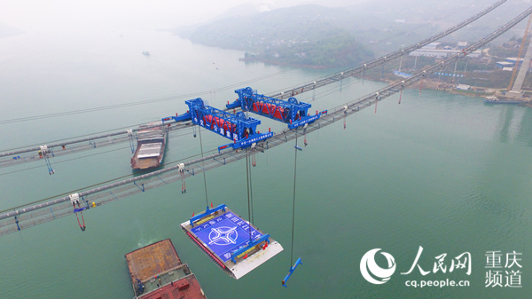 1月3日,萬州新田長江大橋開始起吊鋼箱梁。 張玉佰攝