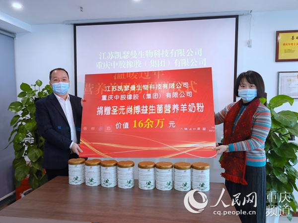 人民網重慶1月12日電(胡虹)12日,“溫暖過年”為孤殘兒童、留守兒童加油愛心捐贈儀式在重慶兒童救助基金會舉行。當日,愛心企業江蘇凱瑟曼生物科技有限公司、重慶中膠橡膠(集團)有限公司通過重慶兒童救助基金會捐贈了價值16萬余元的羊奶粉,用以幫助兒童福利機構孤殘兒童、困難家庭留守兒童,事實無人撫養兒童。