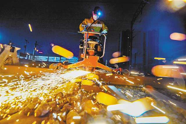 1月7日凌晨,重慶北站站場,為積極應對寒冷天氣,中國鐵路成都局集團公司重慶工電段的維護工人加強了對鐵路鋼軌的養護維修力度,鋼軌“防斷”成為鐵路維護工作的重中之重。