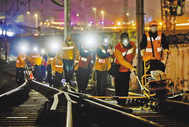 凌晨1點,寒風凜冽,一群身著黃色工作服的維護工人扶著作業機具在鐵路外整裝待命!疤齑熬S修命令已下達,可以進場!睂χv機里傳來施工維修命令,維護工人推行作業機具前往維修地點,對需要維修的鋼軌進行焊接,以確保列車運行安全,提升旅客乘車的舒適度,也為即將到來的春運做好準備。