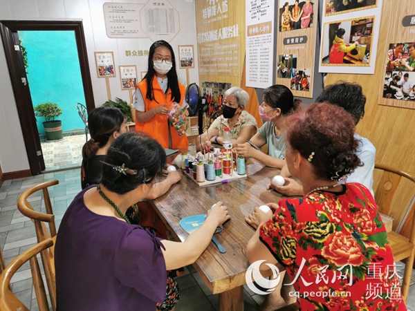沙坪壩區民政局《社區能人坊 自治增活力》案例,手工能人徐麗蕓教手工制作。 沙坪壩區民政局供圖