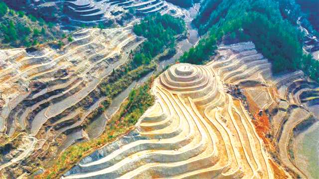 為開發利用土地資源,入冬以來,酉陽縣將何家巖村5817畝荒山荒坡和撂荒地全部改造成為高產優質梯田,用來發展生態有機“花田貢米”,并打造360度高山梯田景觀。目前改造工程基本完工,即將進入引排水溝渠、耕種便道施工階段。