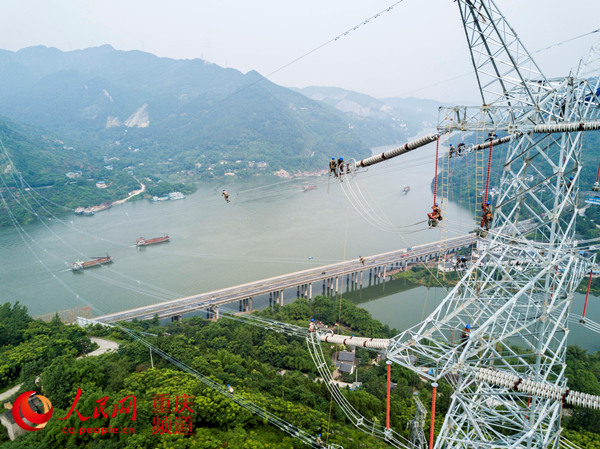 國網重慶市電力公司員工在川渝電網第三通道500千伏資銅線(四川資陽-重慶銅梁)開展作業。 劉潺攝