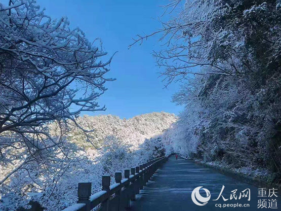 人民網重慶1月20日電 受冷空氣影響,涪陵武陵山近日連降大雪,將重慶武陵山大裂谷景區裝扮成了夢幻的白雪世界,連綿無邊的原始森林被披上了雪白的外衣,吸引著大批游客驅車前往,賞雪、拍照、堆雪人......大家在雪地撒著歡,體驗著別樣的裂谷冰雪季。