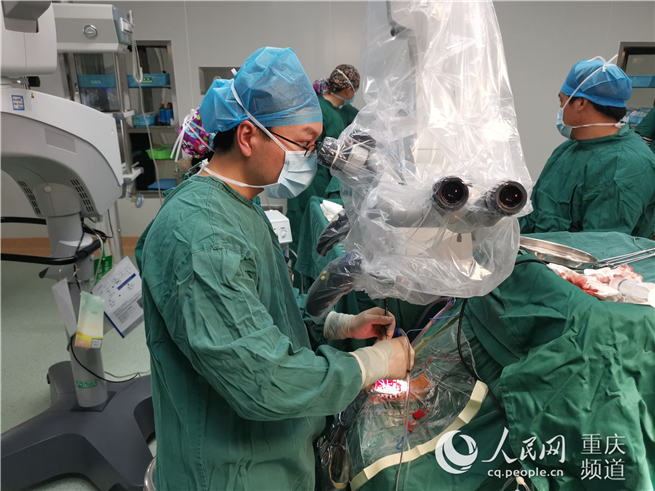 第四批組團式援藏專家陳晉為患者手術。 重慶市衛健委供圖