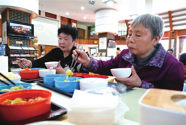 老人們在社區養老服務站享用午餐 攝/霍呂