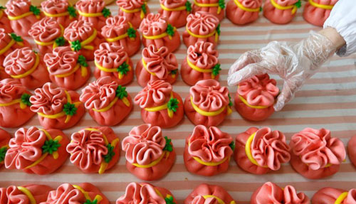 春節臨近,山東省青島市即墨區的農民忙著趕制花饃等傳統面食,供應節日市場。據悉,當地有過年做花饃的習俗,寓意新的一年日子甜甜蜜蜜,生活蒸蒸日上。