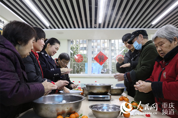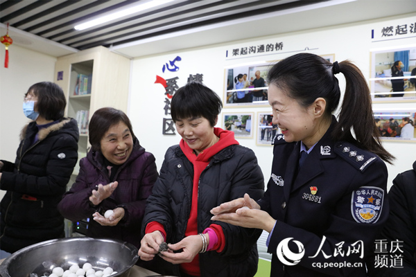 居民在警務室里包湯圓。 沙坪壩警方供圖