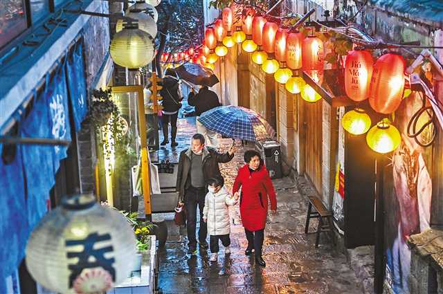 2月15日,渝中區,市民夜游山城巷。首席記者 龍帆 攝/視覺重慶